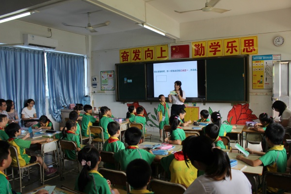 活動(dòng)中,港源學(xué)校的周榮娟老師和四沙小學(xué)的陳金旋老師根據(jù)自己對(duì)教材的理解精彩地展示了《認(rèn)識(shí)幾分之一》的“同課異構(gòu)”教學(xué)課例。兩節(jié)課都本著“以學(xué)生為本”的理念,創(chuàng)設(shè)具體情境,激發(fā)學(xué)生的求知欲望,促進(jìn)學(xué)生在活動(dòng)中主動(dòng)建構(gòu)、探索知識(shí)。雖然課的內(nèi)容相同,但兩位老師的教學(xué)風(fēng)格各異。周榮娟老師的課沉穩(wěn)扎實(shí),對(duì)知識(shí)點(diǎn)的點(diǎn)播準(zhǔn)確到位;陳金旋老師的課活潑、新穎,采用情趣課堂的模式,讓學(xué)生在輕松的氛圍中學(xué)習(xí),在交流、游戲中完成學(xué)習(xí)任務(wù)。