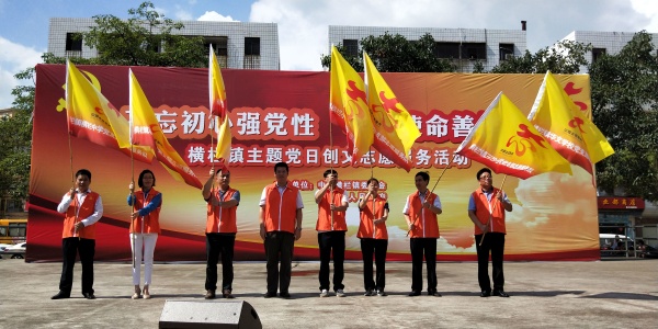 首先由學(xué)校校長(zhǎng)尹少軍帶領(lǐng)創(chuàng)文志愿者,前往健身廣場(chǎng)參加創(chuàng)建文明城鎮(zhèn)啟動(dòng)儀式。啟動(dòng)儀式上,橫欄鎮(zhèn)黨委副書(shū)記、鎮(zhèn)長(zhǎng)陳永華做了動(dòng)員講話(huà),他希望各級(jí)黨組織的每一位黨員都要身先士卒,不但自己要積極參與到創(chuàng)建工作中來(lái),還要帶動(dòng)身邊人也要積極參與創(chuàng)建文明城鎮(zhèn)的志愿工作中來(lái),讓創(chuàng)文工作成為常態(tài)化。接著,橫欄鎮(zhèn)黨委書(shū)記勞國(guó)南為8個(gè)機(jī)關(guān)黨支部志愿服務(wù)隊(duì)和7個(gè)學(xué)校黨支部志愿服務(wù)隊(duì)進(jìn)行了授旗,并宣布橫欄鎮(zhèn)主題黨日創(chuàng)文志愿服務(wù)活動(dòng)正式啟動(dòng)。