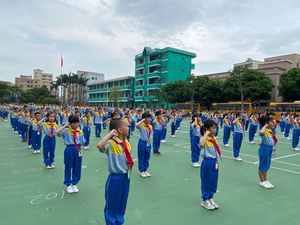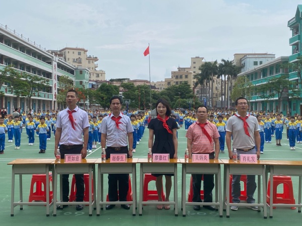 為增強廣大少先隊員組織意識,明確成長目標,培養(yǎng)學(xué)生的主人翁意識,繼承和弘揚少先隊光榮傳統(tǒng),使華文學(xué)子度過一個快樂而又安全的節(jié)日,5月29日下午,華文學(xué)校德育處組織舉行了華文學(xué)校2020年慶六一活動暨新隊員入隊儀式。本次活動由德育處荀丹老師主持,橫欄鎮(zhèn)財政分局廖嘉紅局長、橫欄鎮(zhèn)教育事務(wù)指導(dǎo)中心吳炳炎專干、華文學(xué)校謝春生校長、肖禮發(fā)副校長、賈如意副校長出席了本次活動。