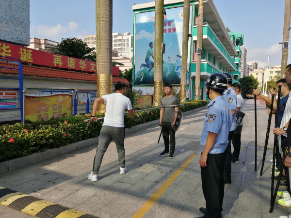在訓練過程中,校園護衛(wèi)隊成員們精神飽滿,斗志昂揚,在楊家永副主任的指導下認真訓練,仔細領會動作要領。楊家永親身示范各類防暴器械的使用要領,并對加強校園防暴應急處置方法等方面提出了許多有針對性的建議。隨后,校園護衛(wèi)隊員們進行了角色模擬和實際演練,楊家永副主任也適時指出演練過程中的不足并進行糾正。