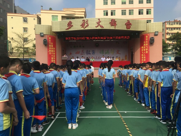 中華民族的愛國主義精神從來就是推動歷史前進的一種巨大力量,是引導(dǎo)廣大青少年樹立正確理想、信念、人生觀、價值觀的重要源泉,促進民族振興的必備條件。為進一步培養(yǎng)華文學(xué)子的愛國主義精神,9月9日上午,華文學(xué)校隆重舉行“我為祖國升國旗”主題教育活動。本次活動由學(xué)校德育處組織,德育處葉冬生主任主持并講話。