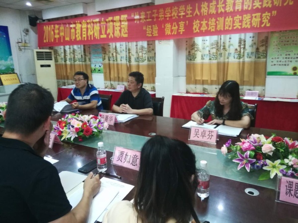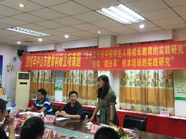 質量立校,科研興校。教科研作為學校工作的重要內容之一,是促進教師專業(yè)化發(fā)展的有效途徑,也是學校持久發(fā)展的不竭動力。為了進一步提升學校辦學品質,逐步實現(xiàn)以課題研究引領學校教育教學工作的開展,中山市橫欄華文學校近日在會議室舉行了中山市2016年教育科研立項課題規(guī)劃項目“外來工子弟學校學生人格成長教育的實踐研究”和中山市2016年教育科研立項課題青年項目“經驗‘微分享'校本培訓的實踐研究”結題鑒定報告會。中山市教育教學研究室副主任段菁華先生、中山市教育教學研究室教研員郭躍輝先生、橫欄鎮(zhèn)教育事務指導中心副主任吳卓芬女士、華文學校董事祝和群先生、華文學校校長謝春生先生及華文全體課題組成員出席了此次會議,會議由課題組成員李永海副主任主持。