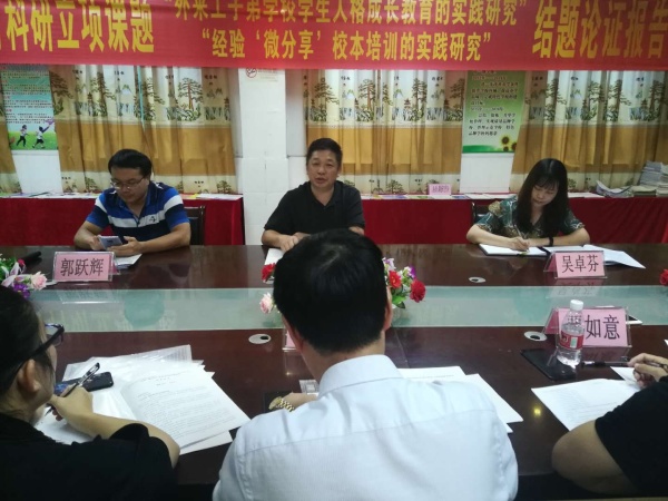 然后,專家組對本課題的結題成果及其他資料進行了查閱。專家組充分肯定了華文學校對科研工作的重視、課題組研究的熱情以及課題的研究價值,同時建議課題組在今后的研究過程中,要加強學習、交流與總結提煉,進一步細化目標、操作和評價體系,要讓研究工作有機融合,要注重平日研究原始資料的積累,特別是要用于實踐。段菁華主任除了充分肯定學校的課題工作之外,還特別提出學校課題工作過程扎實、成果豐實;也對今后的工作做了兩點建議:成果要更側重于學生;創(chuàng)新性的手段要更加多樣化。他強調:這不僅僅當作是課題,也應當作民辦學校教科研的探路者、引領者。宣讀本次結題鑒定結果的是郭躍輝老師,郭老師從課題研究針對性強、思路清晰、研究成果豐富且效果顯著三個方面進行點評,并準予結題。吳卓芬副主任對于學校“立德樹人、德育為先”的育人理念表示肯定。她首先感謝及期盼市教研室專家對橫欄鎮(zhèn)及華文學校的教科研給予更多支持和關懷,希望華文學校再接再厲,在教研室專家們的引領下,把專家們的意見作為指引,打造一支高素質的教師隊伍,形成濃厚的教科研氛圍,為全鎮(zhèn)教科研做好領頭羊,并以此為起點,在在今后的課題研究方面獲得更加豐碩的成果。隨后,謝校長對專家組在百忙之中抽空蒞臨華文學校指導學校教科研工作表示誠摯的感謝;也概括了教科研對教師的成長、學校的發(fā)展所起的重要作用;強調教科研同樣還是學校的軟實力的一個標簽,也提升了學校的辦學知名度;并希望全體課題組成員再接再厲,引領學校教師形成人人有課題、人人齊參與的濃厚的教研研氛圍,進一步提高全體教師的專業(yè)水平。