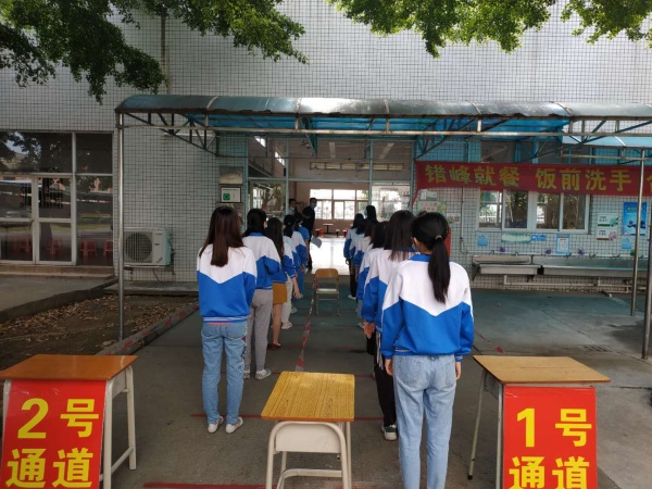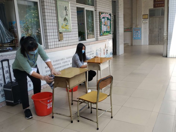 演練活動包括師生上學(xué)放學(xué)體溫監(jiān)測、學(xué)生中午飯?zhí)糜貌?、班級疑似病例處理、班級常?guī)消毒、疑似病例上報等幾個場景。演練過程中強調(diào)學(xué)生保持一米間距,不能互相交談,保持戴好口罩,在洗手過程中要采用“七步洗手法”保證清洗干凈。當(dāng)預(yù)演應(yīng)對班級疑似病例時,還突出強調(diào)要做好班級學(xué)生的安撫工作,穩(wěn)定學(xué)生情緒,以免引起學(xué)生恐慌。演練過程中,全體演練人員操作熟練,認真對待,將師生在校的一日常規(guī)非常完整、細致地演練出來。而觀看演練的老師們也非常認真,細心留意操作的具體過程,為學(xué)生安全返校做好充分的準(zhǔn)備。
