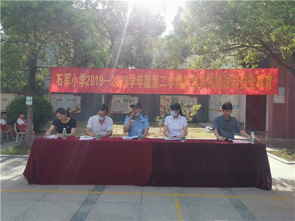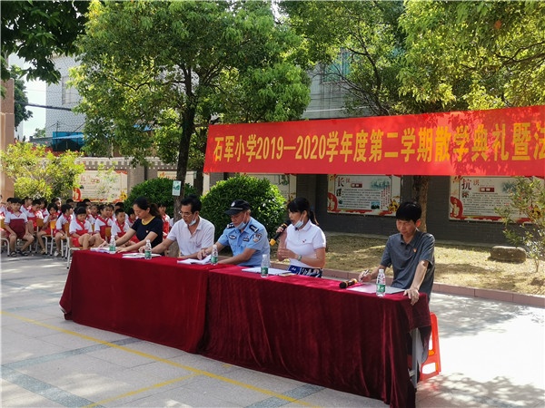 首先,梁毅強老師致開場詞,由于新型冠狀疫情的影響,全體師生教學和學習的時間有限,但是在老師們的辛勤的教導下,同學們積極向上,收獲了成功和喜悅,祝賀大家,并宣布石軍2019-2020學年第二學期散學典禮暨法制安全教育現(xiàn)在開始。