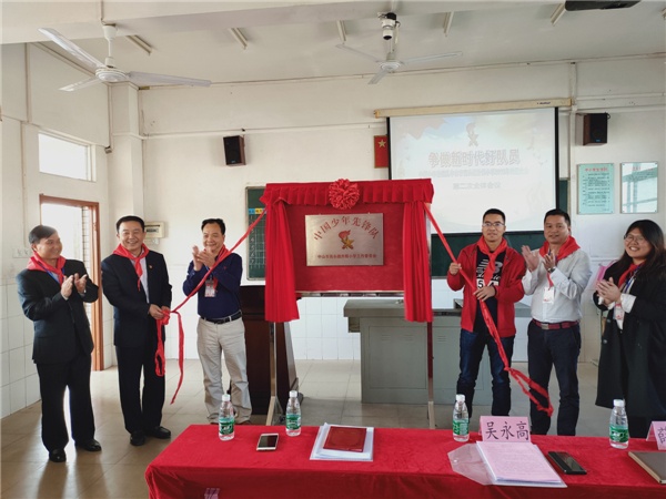 隨后,吳永高局長(zhǎng)、薛棉副書記以及升輝小學(xué)少工委主任呂鑒添校長(zhǎng)還有副主任們?cè)陉?duì)員們的倒數(shù)和歡呼聲中共同為升輝少工委揭牌。學(xué)校少工委的成立標(biāo)志著學(xué)校少先隊(duì)工作走上一個(gè)新的臺(tái)階。