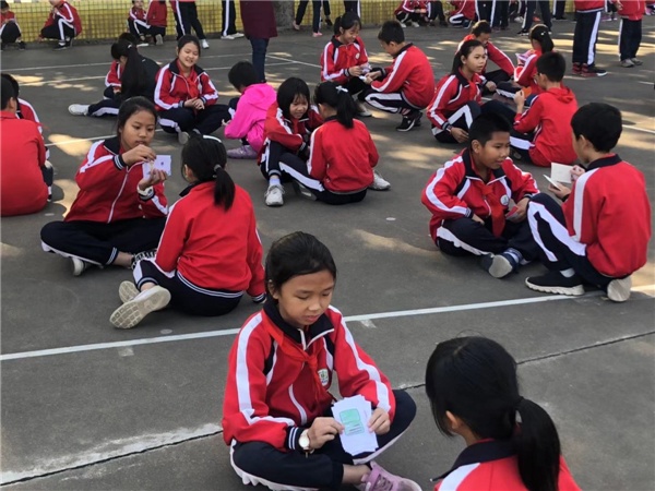 本次活動主要是通過同學之間“兩兩結對”,用單詞卡片進行問答的方式展開?;顒娱_始之前,學生們有組織地來到各自班級的活動區(qū)域,并按照分組有序地分組;然后拿出自己提前精心制作好的單詞卡片;接著“師友間”輪流抽卡認讀,認讀后再進行拼讀。整個活動中,一幅幅想象力豐富的圖片不斷出現(xiàn),一個個流利的英語單詞從孩子們的口中說出,氣氛熱烈。