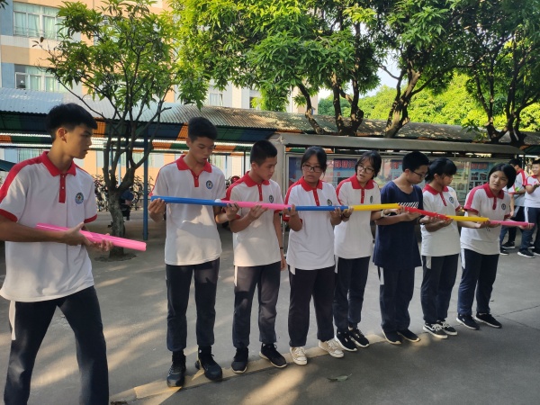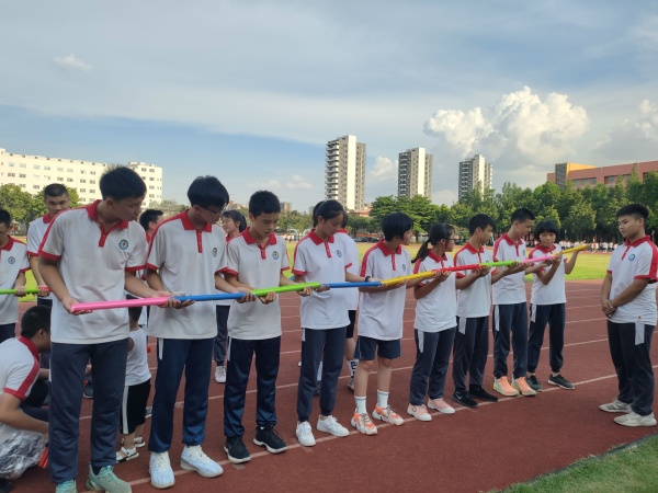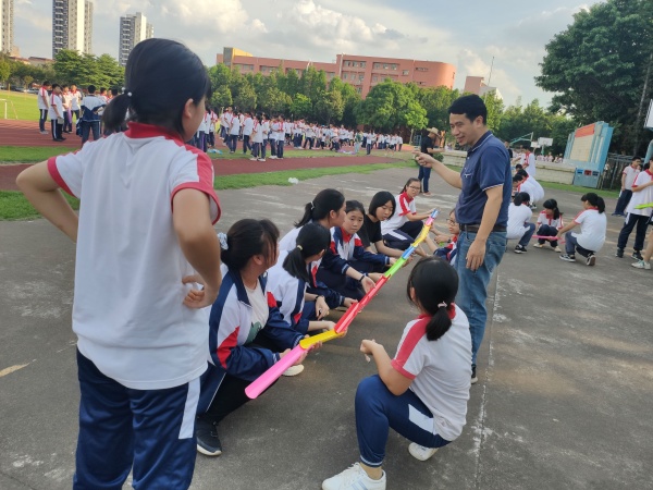 首先,初三年級的學生們在班主任的帶領(lǐng)下,懷揣期待與熱情,從教室下到操場,在跟班老師和班干部的協(xié)助下,以班級為單位分四組開展“珠行萬里”、“夾板接力賽”活動項目?;顒佑纱死_了序幕,妙趣橫生的比賽環(huán)節(jié)營造了輕松愉快的氛圍,也讓學生們緩解緊張情緒,盡情地投入到活動中來。