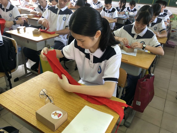 最后,同學(xué)輕輕摘下自己的紅領(lǐng)巾,折疊好,統(tǒng)一放進(jìn)盒子里珍藏,多年以后翻出來查看,是多么美好的回憶??!