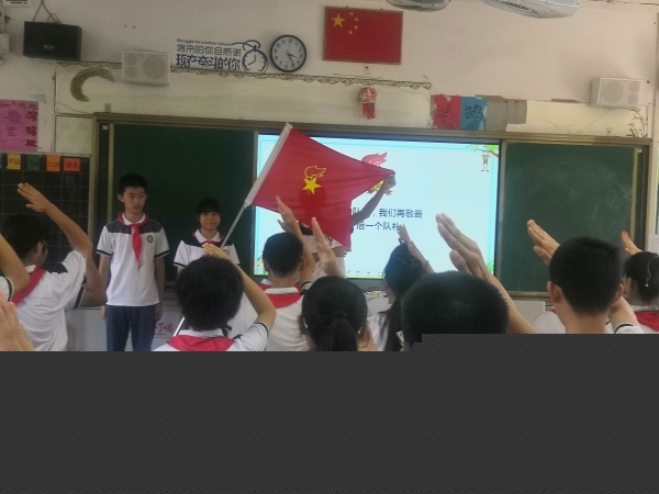 接著,全體隊(duì)員重溫入隊(duì)誓詞,由離隊(duì)隊(duì)員代表初二(8)班白軒怡同學(xué)發(fā)言,她說:“回顧在少先隊(duì)的日子,是難忘而快樂的。忘不了在入隊(duì)儀式上,我們莊嚴(yán)的宣誓;忘不了那已行過無數(shù)次的少先隊(duì)隊(duì)禮;忘不了那已在胸前佩戴過無數(shù)次的鮮艷的紅領(lǐng)巾……"