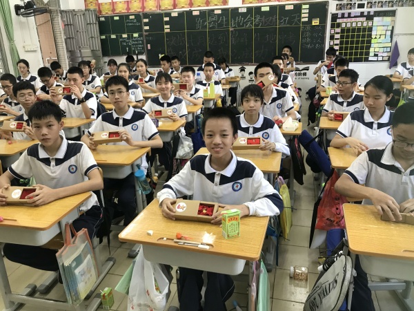 在這重要時(shí)候,家長雖然不能來學(xué)校,但他們也送來了“神秘禮物”,孩子小時(shí)候的照片和視頻留言,讓同學(xué)們驚喜不已,聽到爸媽的祝福,孩子們?nèi)滩蛔×粝卵蹨I。隨后,集體過14歲生日,一陣陣的歡笑聲,歌聲縈繞校園!