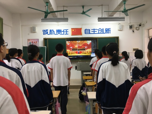 首先,舉行莊嚴(yán)的升旗儀式,全校師生奏唱國(guó)歌,集體背誦二十四字社會(huì)主義核心價(jià)值觀和學(xué)校校訓(xùn)。接著進(jìn)行主題教育,首先讓學(xué)生認(rèn)識(shí)生命不僅屬于自己,也屬于家庭。父母含辛茹苦地孕育我們,我們承載著家庭、父母的希望,我們一出生,家人就開始為我們付出辛勤的勞動(dòng)。所以,我們更應(yīng)該珍惜自己的生命!接著圍繞“何謂校園欺凌?”、 “校園欺凌的特點(diǎn) ”、“校園欺凌的危害”、“如何應(yīng)對(duì)欺凌?”展開學(xué)習(xí),并學(xué)習(xí)了《廣東省最新的校園欺凌處分條例》 ,讓學(xué)生認(rèn)識(shí)了校園欺凌的種類和事件的處置。并列舉了全國(guó)各地近期以來(lái)發(fā)生的大量鮮活案例,深入淺出地分析了校園欺凌事件產(chǎn)生的原因及危害后果。并結(jié)合個(gè)別同學(xué)身上出現(xiàn)的不良行為進(jìn)行剖析,從而告誡學(xué)生,對(duì)校園欺凌事件要采取零容忍的態(tài)度,不但自身不能觸犯欺凌行為,還要懂得保護(hù)自己,采取正當(dāng)方式和欺凌行為作斗爭(zhēng)。