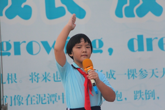 國(guó)旗下,來(lái)自502中隊(duì)的尚可馨學(xué)長(zhǎng)進(jìn)行了以《感恩老師,慶祝教師節(jié)》為題的精彩演講。可馨學(xué)長(zhǎng)說(shuō):“老師就像蠟燭一樣,燃燒了自己,照亮了別人,默默地在自己的崗位上無(wú)私的奉獻(xiàn)著。在人生的旅途上,是老師為我們點(diǎn)燃希望的光芒,給我們插上理想的翅膀,翱翔在知識(shí)的海洋上……”,她并代表全體隊(duì)員提前祝老師們教師節(jié)快樂(lè)!