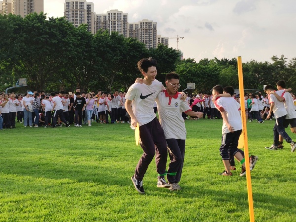 接著,進行二人三足迎面接力賽,每個班級選取10位男同學,10位女同學代表班級進行比賽,最快到達終點的班級獲勝。隨著哨聲吹響,同學們便開始奮力沖刺,有的同學健步如飛,有的同學寸步難行,還有的同學步調(diào)不一,不慎摔倒,但是,他們沒有就此放棄,而是迅速爬起,重新調(diào)整隊形,繼續(xù)追趕對手。此時的同學們都將學習的壓力拋諸腦后,玩得不亦樂乎。
