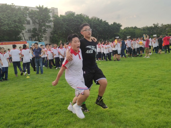 首先,初三年級的學生們在班主任的帶領下,懷揣期待與熱情,從教室下到操場,在跟班老師和班干部的協(xié)助下,以班級為單位分四組開展“珠行萬里”、“夾板接力賽”活動項目?;顒佑纱死_了序幕,妙趣橫生的比賽環(huán)節(jié)營造了輕松愉快的氛圍,也讓學生們緩解緊張情緒,盡情地投入到活動中來。