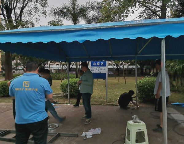 南頭鎮(zhèn)初級中學(xué)全校學(xué)生復(fù)學(xué)在即,學(xué)校大門是校園疫情防控的第一道防線 ,校門口測溫工作至關(guān)重要。但是,學(xué)校學(xué)生人數(shù)眾多,人工測溫方式速度較慢,容易影響學(xué)生進(jìn)校時間,出現(xiàn)學(xué)生聚集的情況,所以,校門口測溫任務(wù)顯得較艱巨。當(dāng)黃時康先生了解到相關(guān)情況后,二話不說,馬上聯(lián)系盧新泉校長,表明想捐贈人體熱感測溫系統(tǒng)協(xié)助學(xué)校做好校園疫情防控工作,并帶領(lǐng)工作人員于5月10日晚加班加點(diǎn)地將測溫系統(tǒng)安裝到學(xué)校北門。