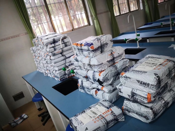 為了能安全地將課本送到學生手中,學校決定采用郵政速遞的方式進行發(fā)放。首先,2月26日總務處聯(lián)系郵政速遞負責人,洽談相關(guān)事項,然后擬定、發(fā)放致家長一封信,征詢家長意見,并于27日上午12點完成對需要快遞教材學生數(shù)量的統(tǒng)計。接著,徐主任組織后勤工作人員把書本按照一生一袋進行分裝打包。學生數(shù)量多,打包工作量大,學校工作人員加班加點進行分裝打包,并且部分熱心家長積極參與到課本打包過程中,因而大大加快了此項工作的速度。終于,在眾人的支持下,學校僅用三天就完成此項工作。