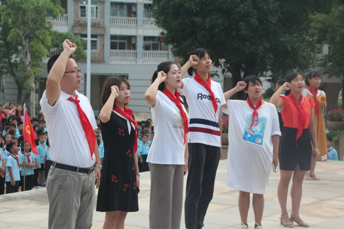 第三項,由大隊輔導(dǎo)員李曉宇宙學長帶領(lǐng)全體導(dǎo)師進行師德師風宣誓。在全體學生的見證下,老師們面向國旗,舉起右手,進行莊嚴宣誓:“我是一名光榮的人民教師。面對國旗,我莊嚴宣誓:忠于人民的教育事業(yè),履行教師的神圣職責。愛國守法、以德育人;愛崗敬業(yè)、關(guān)愛學生,刻苦鉆研、嚴謹篤學;勇于創(chuàng)新、奮發(fā)進取;淡泊名利、志存高遠;教書育人、為人師表;團結(jié)協(xié)作、終身學習。為學校教育事業(yè)的全面發(fā)展、為中華民族的偉大復(fù)興、為人類文明的不斷進步,貢獻自己的全部智慧和力量!”