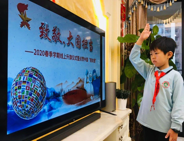 春風(fēng)吹綠了大地,春花芬芳了心靈。在全國(guó)人民的團(tuán)結(jié)下,新冠疫情呈好的態(tài)勢(shì)令人欣喜。在病毒肆虐,全球談疫變色的危急時(shí)刻,中國(guó)大愛的胸懷讓世界溫暖,展現(xiàn)出了大國(guó)擔(dān)當(dāng)之氣魄和風(fēng)范。不知不覺,已經(jīng)是第七周,3月30日上午,南頭三鑫學(xué)校全體少先隊(duì)員相聚線上,共同致敬親愛的祖國(guó),致敬勇敢的人民,致敬偉大的時(shí)代,致敬“你中有我、我中有你”的世界!