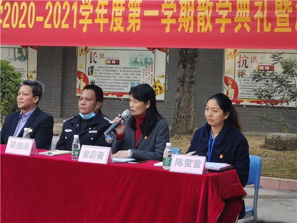 接著,梁蔚菁校長總結(jié)本學(xué)期同學(xué)們在校的學(xué)習(xí)與生活情況以及師生所取得的可喜成績。梁校長指出:一分耕耘,一分收獲。全體同學(xué)在老師們的悉心指導(dǎo)下,經(jīng)過一學(xué)期的學(xué)習(xí)與用心準(zhǔn)備期末復(fù)習(xí),因此也收到了理想的結(jié)果,希望同學(xué)們今后繼續(xù)發(fā)揚(yáng)勤學(xué)好問的精神,保持學(xué)習(xí)的積極性,有期末復(fù)習(xí)的學(xué)習(xí)勁頭。并寄語全體同學(xué),寒假要遵守紀(jì)律,時刻謹(jǐn)記,做個文明守法的學(xué)生。