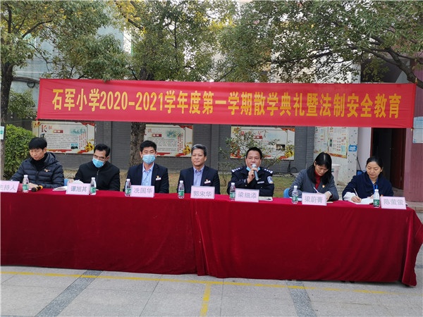 升旗儀式結(jié)束后,首先進(jìn)行石軍小學(xué)2020—2021學(xué)年度第一學(xué)期散學(xué)典禮暨法制安全教育。馬新派出所梁細(xì)添同志表示,小學(xué)生現(xiàn)在正擔(dān)負(fù)著努力學(xué)習(xí),將來建設(shè)祖國的重任,那就需要大家知法、懂法、守法。一直以來,學(xué)校始終把法制、安全工作放在首要位置,因此梁同志作了有關(guān)寒假的法制安全知識講座,同學(xué)們通過聽故事和生活案例了解更多的法制知識,平安愉快過寒假。