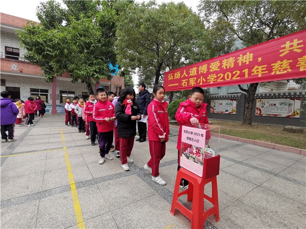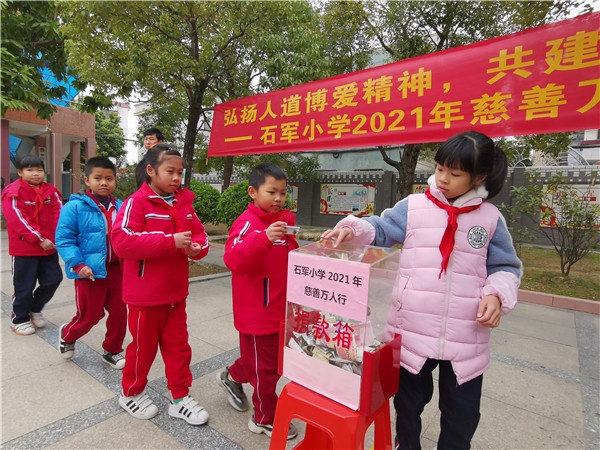 慈善事業(yè)是一項(xiàng)重大的社會(huì)公益事業(yè),它需要全社會(huì)的廣泛參與,同樣也需要每一位師生共同踐行。為了響應(yīng)廣東省政府的號(hào)召,積極參與2021年“廣東扶貧濟(jì)困”活動(dòng),為關(guān)愛(ài)貧困人口獻(xiàn)出自己一份微薄力量,2021年1月8日,石軍小學(xué)開(kāi)展“弘揚(yáng)人道博愛(ài)精神 共建共享美好家園”慈善萬(wàn)人行捐款活動(dòng)。