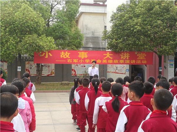 2019年3月18日,黃圃鎮(zhèn)石軍小學(xué)依舊秉承學(xué)校原有的建設(shè)特色,在莊嚴(yán)的升旗儀式過(guò)后,繼續(xù)進(jìn)行“小故事,大講堂——革命英雄故事演講活動(dòng)”。