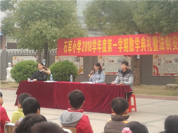 此次散學(xué)典禮暨法制安全教育活動給本學(xué)期工作畫上了一個(gè)圓滿的句號,同時(shí),這也是一個(gè)新的起點(diǎn),在新學(xué)期里,石軍小學(xué)全校師生將再接再厲,讓學(xué)校再上一個(gè)新的臺階!