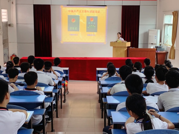 詳細(xì)介紹了中國共產(chǎn)主義青年團的性質(zhì),闡述了共青團艱辛發(fā)展史和光輝奮斗史,讓學(xué)生明白了團組織發(fā)展團員的標(biāo)準(zhǔn)和團員應(yīng)具備的素質(zhì)。并向同學(xué)們講述了團旗、團徽、團歌、團員證、入團誓詞等的來歷和歷史意義,讓同學(xué)們進一步了解和掌握了共青團的基礎(chǔ)知識。其次,團支部書記李老師也向各團員提出要求,要嚴(yán)格要求自己,從小事做起,關(guān)心集體,幫助同學(xué),孝敬父母,努力學(xué)習(xí),爭當(dāng)一名優(yōu)秀的共青團員。最后,參加培訓(xùn)的全體團員齊聲朗讀入團誓詞并齊唱團歌,在高亢的齊唱團歌聲中,激發(fā)了同學(xué)們愛國、愛團的情感。