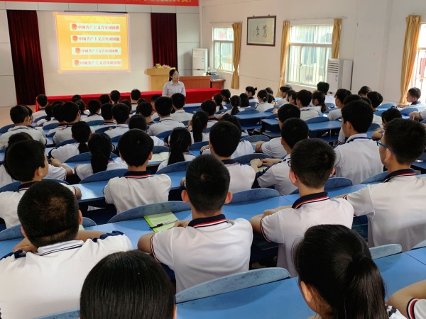 為加深學(xué)生對團的認(rèn)識,培養(yǎng)學(xué)生的團員意識,增強學(xué)生的責(zé)任感和使命感,4月10日中午,華洋學(xué)校團支部書記李夢桃老師、副書記黎偉婷老師組織了85名新老團員在階梯室開展以“不忘初心跟黨走 爭當(dāng)優(yōu)秀共青團員”為主題的團課培訓(xùn)。