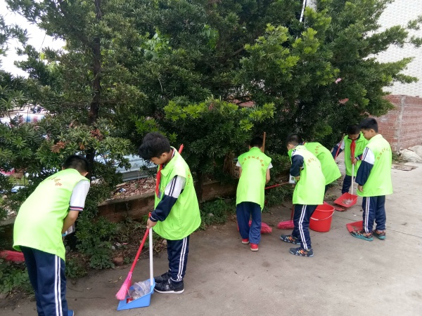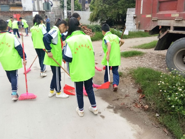 活動開始,少先隊員們興高采烈地拿著勞動工具,一個個精神抖擻,不怕臟不怕累,爭先恐后干得熱火朝天。有的拿著掃帚清理道路,有的拿著鏟子鏟粘地面比較緊不易打掃的垃圾,還有的同學(xué)兩人一組抬著垃圾桶來回的搬運著垃圾,同學(xué)們個個手腳并用,將一處處的垃圾清掃一空,老師們也身先士卒,參與到活動中來,同學(xué)們見狀更是倍受鼓舞,干得更加積極,師生共同努力,掃得不亦樂乎,街道上、衛(wèi)生死角里到處都可以看見揮舞著的掃把和同學(xué)們辛勤的汗水,現(xiàn)場秩序井然,氣氛熱鬧非常。通過同學(xué)們近一個小時的努力,路上展現(xiàn)出一番新的亮麗景象,周邊的村民們也露出了贊許的目光。
