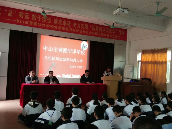 ——中山市黃圃華洋學校召開七、八年級學生勵志動員大會發(fā)布時間:2019-03-04 12:18 信息來源:本網(wǎng)站 瀏覽次數(shù):63