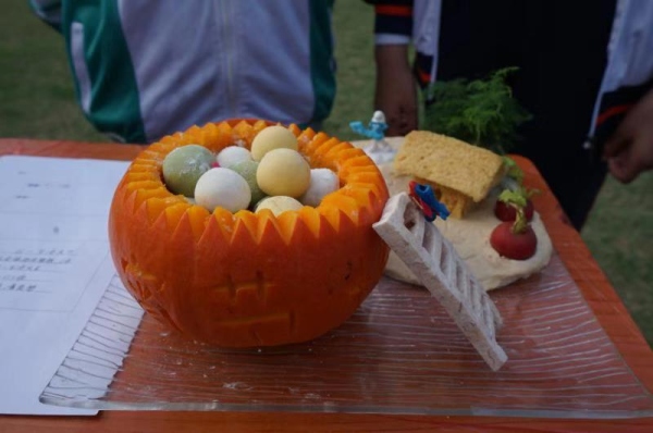 學(xué)校鼓勵同學(xué)們積極參與,凡報名即可參加,五百多位同學(xué)報名參加了本次活動,桌子在足球場擺放整齊,校園沸騰了。參加本次活動的同學(xué)提前備好了糯米面團和各種口味的湯圓餡,隨著老師“比賽開始”的口令,參賽同學(xué)認真的忙活起來了。雖是第一次參加這類比賽,但同學(xué)們卻別出心裁精心配色搓出了許多色彩繽紛、形狀各異的湯圓。看,有熊貓湯圓、小豬湯圓、南瓜湯圓、橘子湯圓……;經(jīng)過30分鐘的角逐終于到了關(guān)鍵時刻,同學(xué)們發(fā)揮想象將類主題運用于擺盤上:《流浪地球》、《五谷豐登》、《小豬一家親》、《流星花園》、《如魚得水》、《辣椒醬湯圓》等等紛紛登場讓人目不暇接??粗约旱淖髌?,大家臉上洋溢著興奮與自豪的笑容。