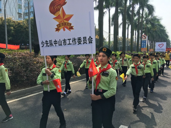 仙小少年軍校領(lǐng)袖團(tuán)代表中山市少先隊(duì)工作委員會(huì)及中山市少先隊(duì)特色社團(tuán)參加團(tuán)市委游行方隊(duì),他們身穿訓(xùn)練服,精神抖擻、意氣風(fēng)發(fā),大步走在大道上,不時(shí)高喊習(xí)總書記對(duì)全國(guó)少先隊(duì)員的寄語(yǔ)“從小學(xué)習(xí)做人,從小學(xué)習(xí)立志,從小學(xué)習(xí)創(chuàng)造”,受到了圍觀群眾的熱烈喝彩。