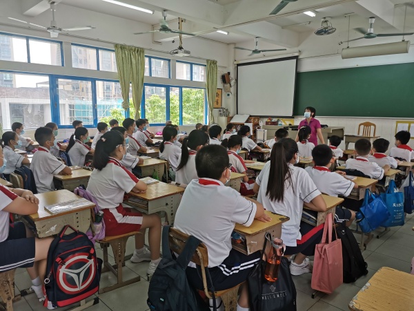 第一節(jié)課是升旗儀式和校會時間。在校會時間按照市教體局要求全體同學認真收看《天使歸來,英雄開講》視頻。第二節(jié)課由正副班主任負責。讓學生們熟悉一日常規(guī)和閉環(huán)管理路線。在老師的耐心引導下,孩子們逐漸熟悉了新的行程。第三節(jié)課開始按班級課程表進行,分享在家學習趣事,或復習線上學習內(nèi)容等。
