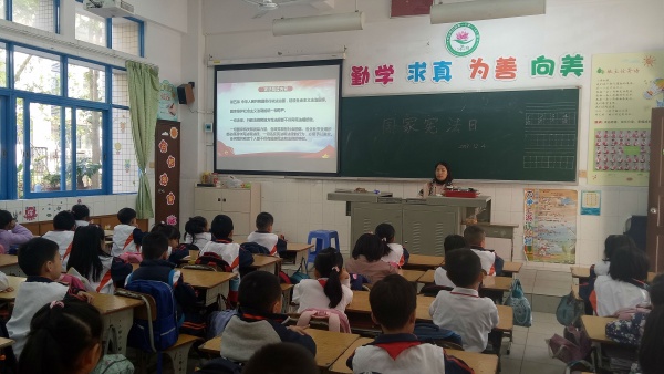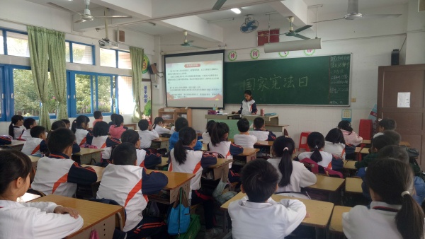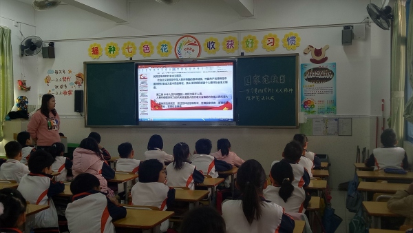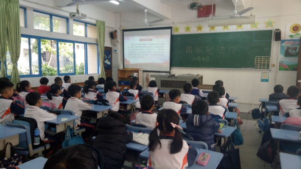 2019年12月4日是第六個國家憲法日,為全面落實深入學習宣傳和貫徹實施《中華人民共和國憲法》的要求,根據(jù)相關文件精神,石岐第一小學開展了“學法守法·健康成長”主題活動。學校利用國旗下講話、晨讀、主題班會以及校園廣播站、宣傳欄、黑板報、電子屏等途徑積極宣傳憲法精神,弘揚憲法權(quán)威。