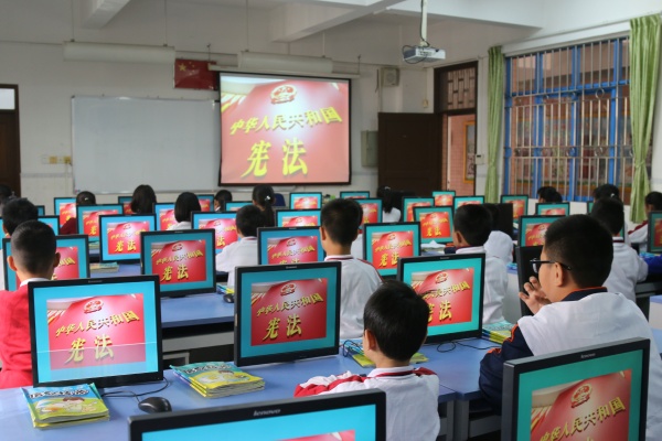 12月4日早晨,全校師生在教室舉行了憲法晨讀活動,梁小玲副校長選取了憲法第二章中的部分內(nèi)容向全體師生進行宣講,梁副校長不僅用生動的事例來宣傳憲法,在校園內(nèi)營造了學習憲法的氛圍,而且電腦課時間也組織學生觀摩教育部全國青少年普法網(wǎng)的“國家憲法日”主題教育直播節(jié)目,進行同步學習。隨后展開了“國家憲法日,讓憲法精神照亮美麗校園”的手抄報制作及征文活動。