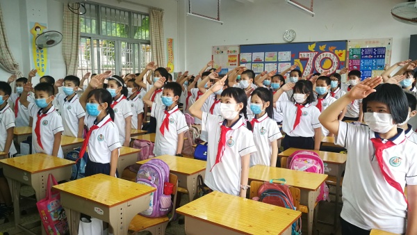 在疫情防控的特殊時期,學(xué)校扎實開展疫情防控教育,推進抗疫精神進課堂,組織學(xué)生在室內(nèi)舉行復(fù)學(xué)儀式,當(dāng)國歌、校歌的旋律再次響起,整個校園又充滿了活力,只見教室里所有同學(xué)紛紛起立,目光熾熱地注視著前方的五星紅旗,鏗鏘有力地唱響了嘹亮的國歌,余聲在校園上空回蕩著,表達了學(xué)子們對祖國的熱愛。莊嚴(yán)的升旗儀式后,學(xué)生代表區(qū)雅茜跟全體同學(xué)談了自己如何調(diào)整狀態(tài)適應(yīng)校園生活和學(xué)習(xí)的方法,倡議同學(xué)們珍惜這來之不易的入學(xué)機會,爭取在學(xué)習(xí)上更上一層樓。接著,劉依婷校長為四到六年級學(xué)生作《開學(xué)第一課》主題講話,她強調(diào)疫情防控時期復(fù)學(xué),在校師生要嚴(yán)格遵守學(xué)校的各項防疫措施和流程,嚴(yán)格做好師生在校一日活動常規(guī)。最后,各班班主任圍繞 “敬畏生命 熱愛生活”開展主題班會,學(xué)習(xí)如何科學(xué)應(yīng)對疫情、如何保證生命健康等知識,增強學(xué)生心理調(diào)適和關(guān)注心理健康意識、能力。