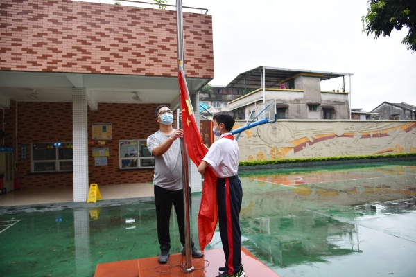 “復學第一課”,由陳惠良主任主持。首先是特別的升旗儀式。新學期第一面國旗,由六2班趙泳瑜爸爸趙權輝升起,趙權輝叔叔在疫情期間,一直堅持參加石岐區(qū)的志愿活動,他是一位熱心家長,學校哪里需要幫忙,哪里就有他的身影。伴隨著國歌緩緩響起,同學們莊嚴佇立,趙權輝的高大形象深深地印在了同學們的心中……