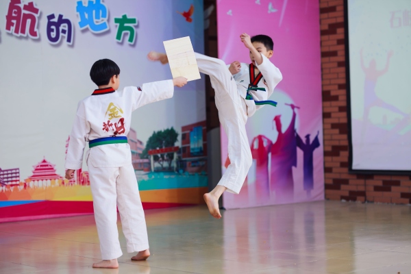 接下來是古典舞《大魚海棠》,小品《我的未來不是夢》,合唱《東方之珠》,舞蹈《隱形的翅膀》,小提琴《沂蒙山》等節(jié)目陸續(xù)登場。四(2)班同學表演的舞蹈《天竺少女 太平腳丫》把比賽活動推向了高潮,女演員們曼妙的舞姿和男演員奔放的街舞完美地融合在一起,充分展現(xiàn)了太平小腳丫的新時代風貌。最令臺下觀眾稱口叫好的是五(1)班、四(1)班和二(2)班代表聯(lián)合表演的跆拳舞——《武動青春》。演員們深厚的跆拳道基本功和眼花繚亂的高超表演技巧,折服了臺下所有的觀眾。大家聚精會神地觀看著演出,鼓掌聲、叫好聲,聲聲不斷,攝影師們“咔嚓咔嚓”地記錄著每一個精彩的鏡頭……
