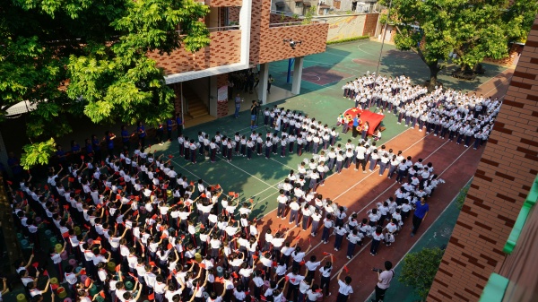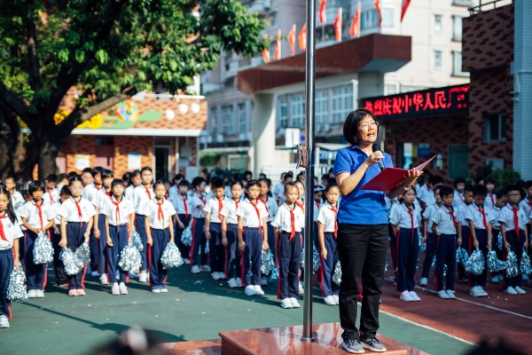 在同學(xué)們熱烈的掌聲中,陳惠良主任走上主席臺,高舉右拳,帶領(lǐng)全校師生進行呼號 “祖國萬歲!祖國萬歲!”雄壯的聲音回蕩整個校園,響徹云霄。