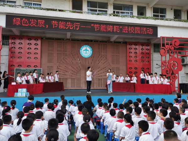 今年的6月17日至23日為全國節(jié)能宣傳周,6月19日為全國低碳日。為了給同學(xué)們普及生態(tài)文明理念,倡導(dǎo)低碳健康的社會(huì)新風(fēng)尚,楊仙逸小學(xué)于6月19日上午第一節(jié)課,在學(xué)?;@球場舉行了以“綠色發(fā)展 節(jié)能先行”為主題的節(jié)能宣傳主題校會(huì),全體師生參與了本次活動(dòng)。這次活動(dòng)由中山市發(fā)展和改革局主辦,由中山廣播電視臺(tái)、廣東聲屏傳媒股份有限公司承辦。參與活動(dòng)的領(lǐng)導(dǎo)和嘉賓有:中山市發(fā)展和改革局副局長陸松煊、廣東電網(wǎng)有限責(zé)任公司中山供電局副總工程師譚仲敏等。電視臺(tái)志林姐姐和城市零距離嚴(yán)翰英哥哥擔(dān)任了此次活動(dòng)的主持人。