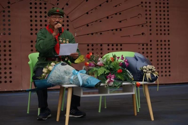 在演講中,何思源爺爺向大家講述了當年他參加對越自衛(wèi)反擊戰(zhàn)的故事。無論是靠松山戰(zhàn)役、嫩金山戰(zhàn)斗,還是馬布爾戰(zhàn)役,每個戰(zhàn)場的地形都十分復雜和險峻,而且時刻臨著敵人的槍林彈雨,戰(zhàn)士們的進軍之路可謂舉步維艱,不少同志壯烈犧牲,而他自己本人也多處負傷,至今身上仍有多處彈片。談及隊友的英勇獻身,何爺爺忍不住含淚動容,并期望年輕一代要銘記歷史,緬懷先烈,向先烈學習。