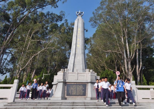 為進(jìn)一步傳承紅色基因,加強(qiáng)學(xué)生的愛國主義教育,培養(yǎng)學(xué)生的家國情懷,落實(shí)立德樹人這一根本任務(wù),研學(xué)第一站安排了“緬懷革命英烈,傳承英烈精神”為主題的祭掃活動(dòng)。同學(xué)們來到了中山市革命烈士陵園,身著整齊的校服,在英雄紀(jì)念碑前舉行了隆重而莊嚴(yán)的掃墓儀式。儀式由梁小玲副校長主持。首先,少先隊(duì)員代表向烈士敬獻(xiàn)花圈;接著學(xué)生代表在紀(jì)念碑前發(fā)言,號召大家要不忘先輩建國功勛,繼承愛國傳統(tǒng),要愛自己,更要愛祖國,要發(fā)奮學(xué)習(xí),為她增光添彩!隨后在少先隊(duì)大隊(duì)輔導(dǎo)員的帶領(lǐng)下,全體同學(xué)右手握緊拳頭,大聲在紀(jì)念碑前莊嚴(yán)宣誓;而后,全體老師及同學(xué)在紀(jì)念碑前默哀一分鐘,表達(dá)對烈士的崇高敬意。