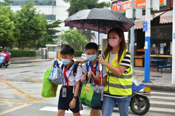 早上7:15分,學校行政、值日老師、家長護衛(wèi)隊及蓮峰派出所警察叔叔們,早早地在校門口熱切地等候著返校的師生們。7:20分開始,學生有序地按學校錯峰安排陸續(xù)返校,盡管隔著口罩,也能感受到同學們按奈不住的喜悅之情。在老師的引導下,同學們以1米間距排隊,依次檢查復學碼和承諾書,通過體溫檢測等防疫步驟后才進入校園,把好入校安全第一關(guān)。四至六年級273名學生,全都順利返校。