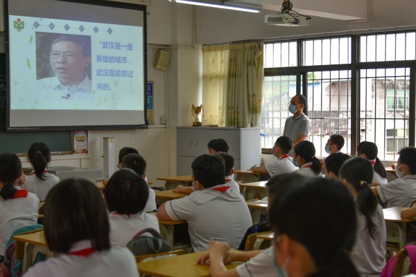 在飽含深情的《加油武漢 加油中國 》歌聲中,正式進入抗疫主題教育。陳主任向同學們介紹了抗疫英雄鐘南山爺爺?shù)母腥耸论E,告訴同學們今天來之不易的和平生活,是無數(shù)像鐘爺爺這樣的英雄的辛勤付出換來的,我們一定要懂得珍惜與感恩!接著陳主任通過示范、講解、視頻等多種形式引導孩子們學習七步洗手法和正確戴口罩的方法。最后,通過觀看小視頻《積極迎變,提升心理彈性》,教會同學們應(yīng)對疫情后返校出現(xiàn)的各種情緒。