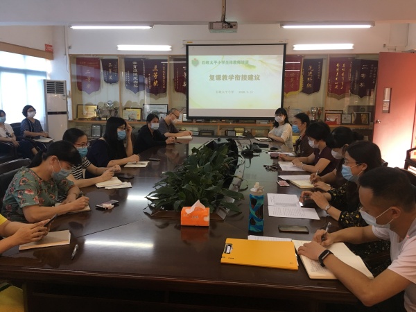 會議由陳紅副校長主持。會議內(nèi)容主要討論了三個議題:一、線上線下教學(xué)銜接;二、復(fù)學(xué)后教學(xué)安排; 三、復(fù)學(xué)初期部分身心靈活動培訓(xùn)。