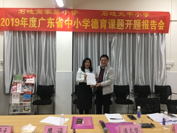12月6日下午,石岐太平小學和高家基小學聯(lián)合在高家基小學煙墩校區(qū)一號樓三樓黨員活動室舉行了2019年度廣東省中小學德育課題開題報告會。出席報告會的有中山市教育工委副書記廖誠,市中小學德育中心副主任、石岐區(qū)教育事務指導中心德育專干潘志堅,三角鎮(zhèn)蟠龍小學段子元校長,廣東省名班主任工作室主持人黃文繼老師,石岐太平小學鄭結(jié)霞校長引領的太平小學課題組成員,石岐高家基小學黃榮勝校長引領的高家基小學課題組成員以及石岐實驗小學馮漢文校長。