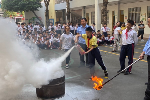石岐西廠小學西廠校區(qū)也在前一日下午成功進行了消防安全逃生演練。全部學生順利疏散到操場后,消防人員還現(xiàn)場教學生如何使用滅火器。兩校區(qū)逃生演練結(jié)束后,各級組長和班主任還利用班會課等組織學生學習了滅火器等消防器材的使用方法、注意事項及煤氣罐火災常見的撲救方法等。