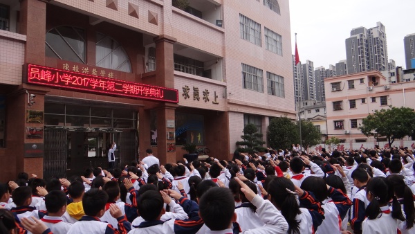 今天陽光燦爛,操場上麻楝樹長出嫩綠的枝丫。石岐區(qū)員峰小學(xué)的師生們在校園的操場上舉行了開學(xué)典禮!